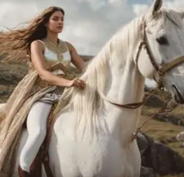 "She rode on wild horses WITH GARLANDS OF FLOWERS!"